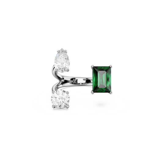 Mesmera open ring, Mixed cuts, Green, Silver-tone finish