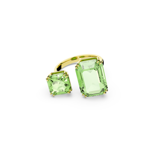 Millenia open ring, Octagon cut, Green, Gold-tone plated