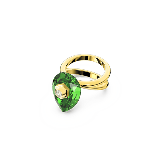 Numina ring, Pear cut, Green, Gold-tone plated