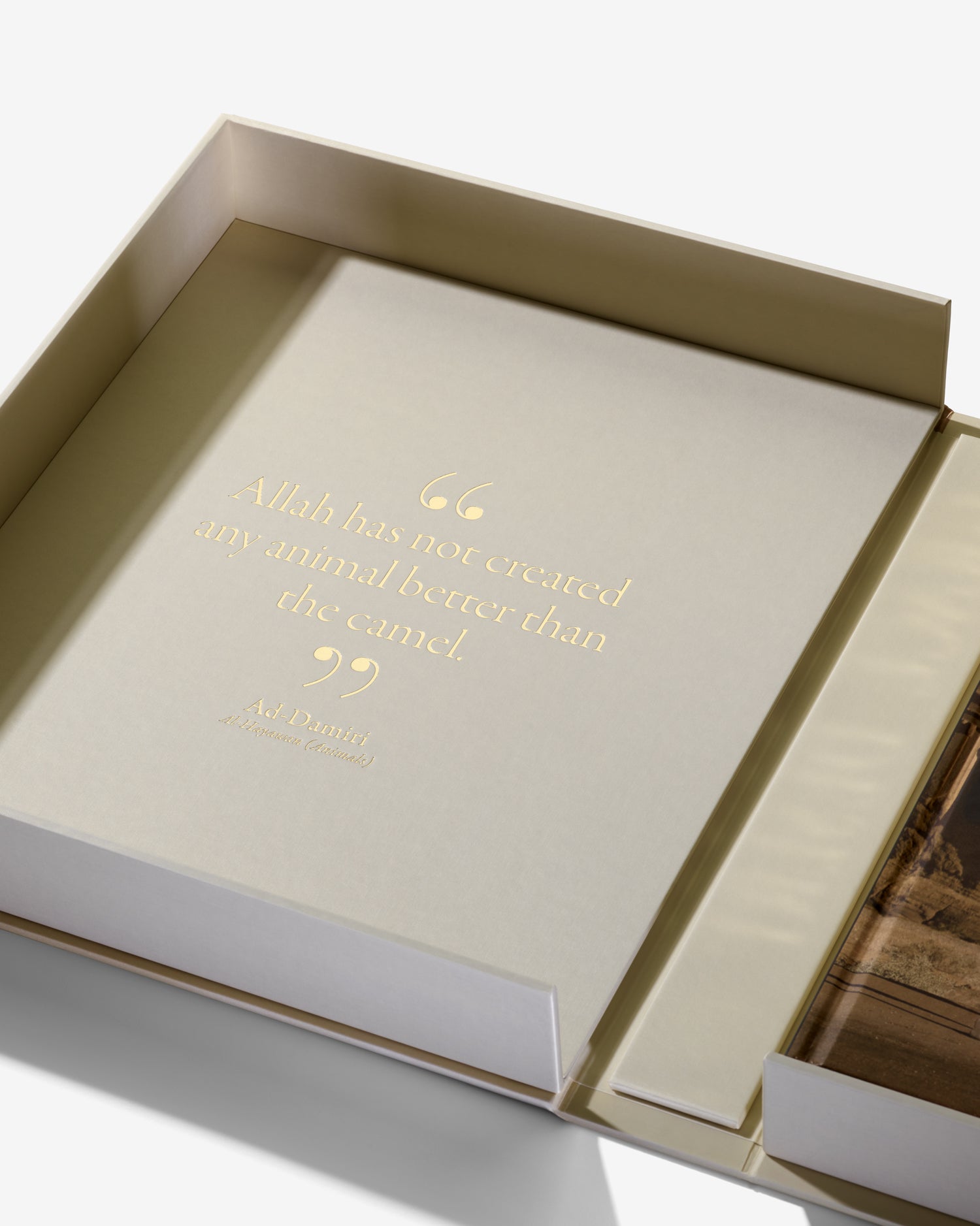 These pages offer an intimate view into the world of the most exclusive and expensive camels and their different breeds and beauty standards. They are considered prized possessions, valued at up to $40 million. This unique volume is produced in collaboration with the Camel Club of the Kingdom of Saudi Arabia, which was created to preserve and celebrate this living cultural heritage. This is a celebration of the allure of the desert and the enduring grace of its most iconic inhabitants.