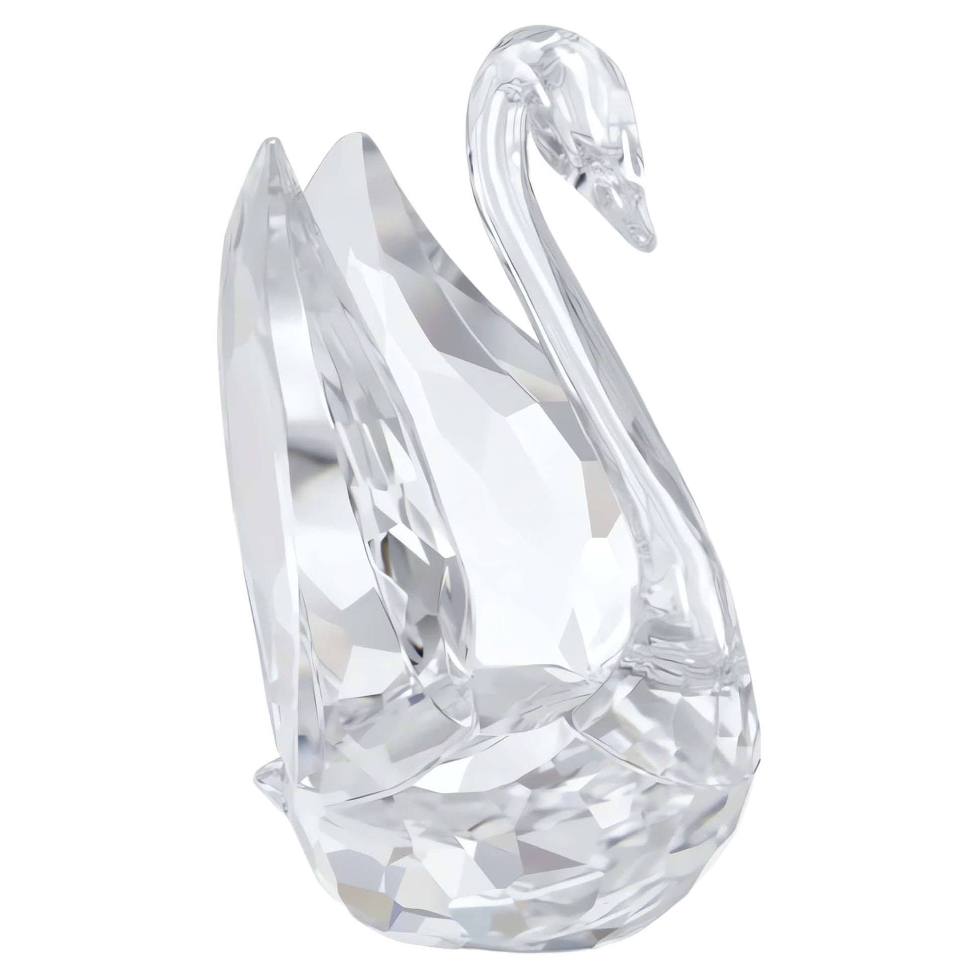 This small decoration piece is inspired by the new Swarovski Swan logo. Designed by Martin Zendron, it is crafted purely from clear crystal with 236 facets, with the Swan's head and neck shaped to form an elegant 'S' for Swarovski. Looking towards the future, with its wings lifted and ready for take-off, this graceful design celebrates the brand's unique craftsmanship and heritage in a modern and sophisticated way. Decoration object. Not a toy. Not suitable for children under 15.