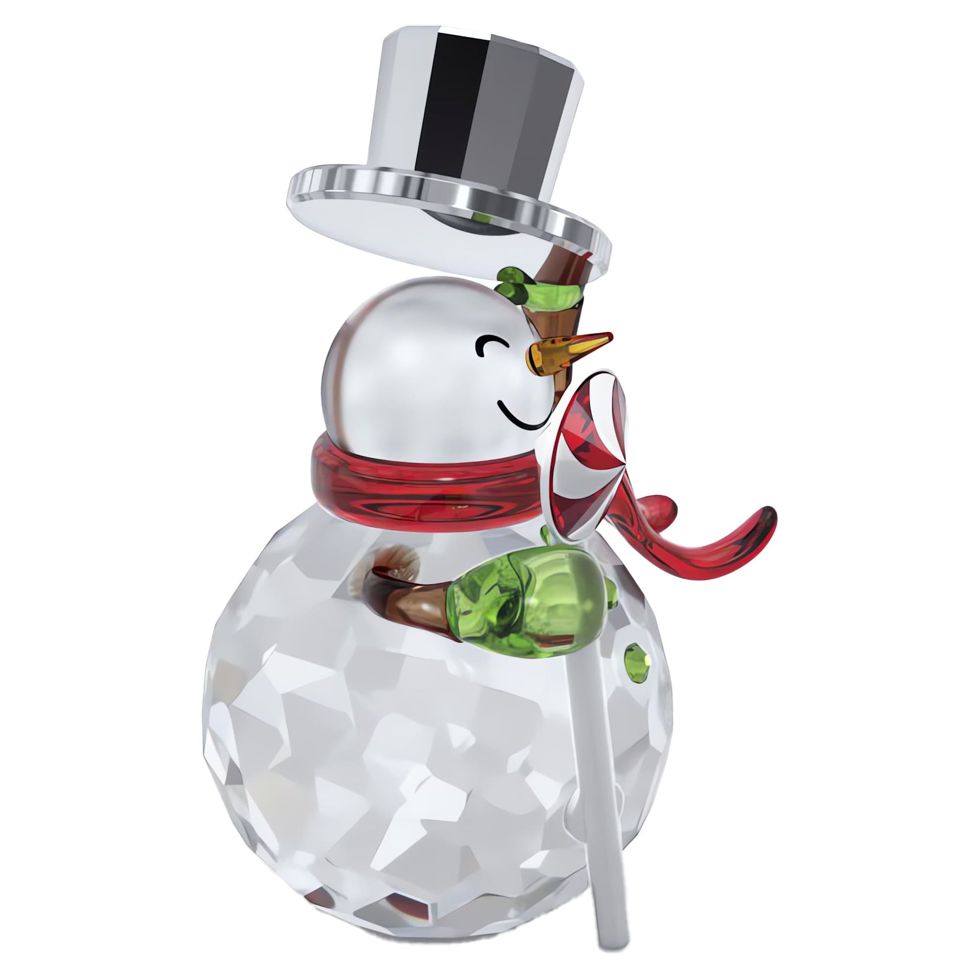 With a tip of his hat, this jolly snowman figurine welcomes in the festive season. The heart-melting design is crafted with 239 facets and features charming details, such as his cozy scarf and lollipop. The crystallized hat has a chrome effect, while metal accents have a lacquered white finish. An adorable piece that will bring seasonal joy to your home. Decoration object. Not a toy. Not suitable for children under 15.