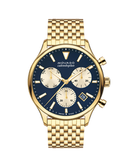 The Heritage Series Calendoplan takes a modern approach to a classic 1950's silhouette. This 43mm chronograph features a navy dial, Swiss Super-LumiNova accents, and a date window.