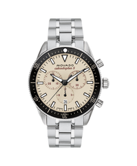 The Heritage Series Calendoplan S modernizes our classic 1950's silhouette with a sporty edge. This 42mm chronograph watch features a sand dial, Swiss Super-LumiNova accents, and a black aluminum bezel.