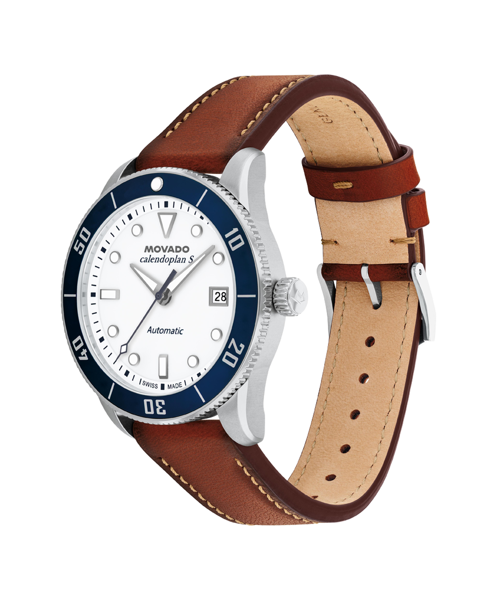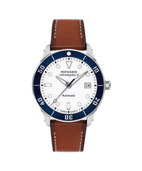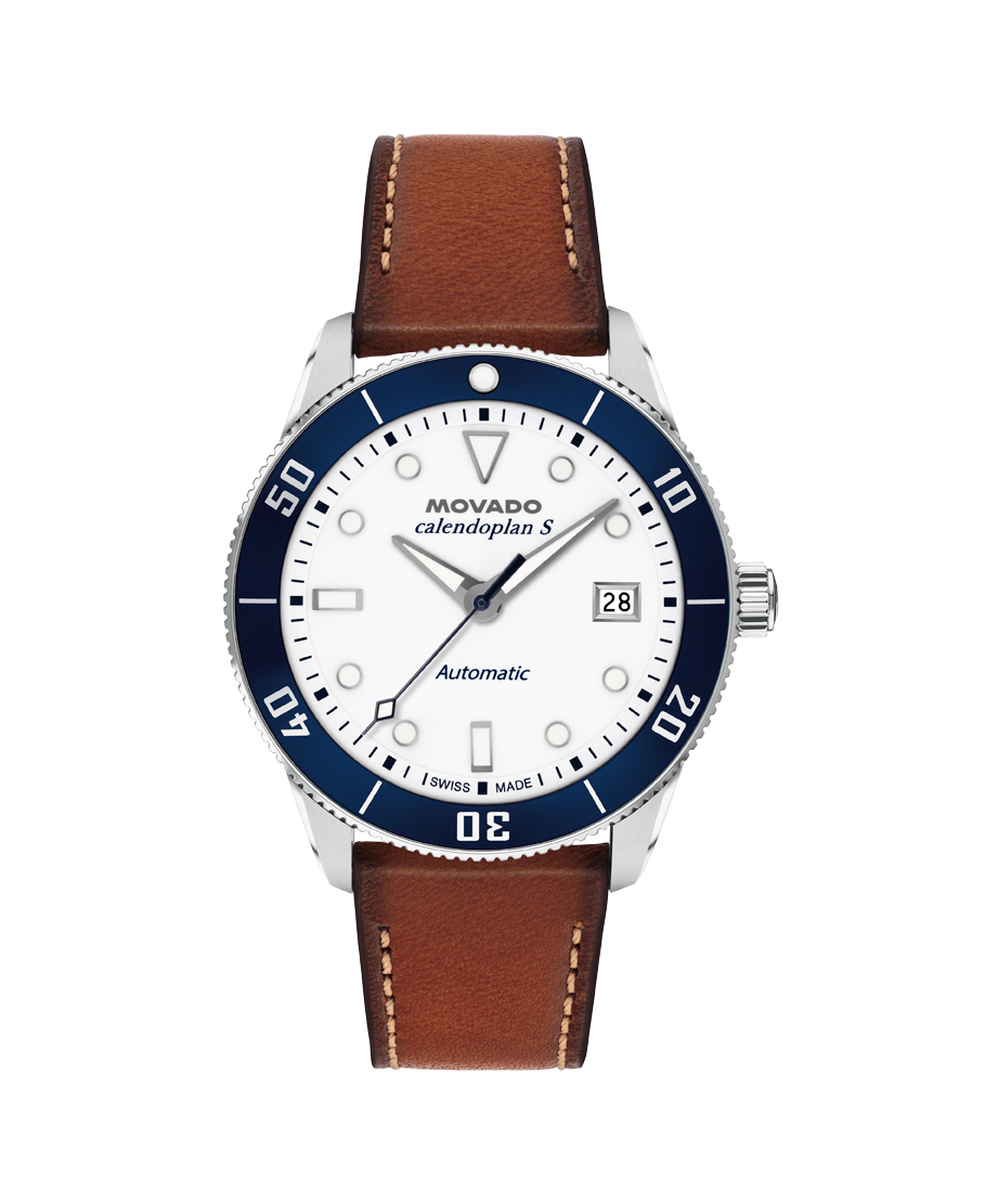 The Heritage Series Calendoplan S modernizes our classic 1950's silhouette with a sports edge. A Swiss made self-winding movement drives this watch, powered by the motion of your wrist. This 40mm watch features a white lacquer dial, Swiss Super-LumiNova accents, and a blue aluminum bezel.