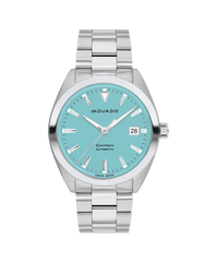 First introduced in the late 1960s, the Heritage Series Datron is a classic mid-century style with a distinctive case. A Swiss made automatic movement drives this watch, powered by the motion of your wrist. This 40mm watch features a light blue dial, Swiss Super-LumiNova® accents, and an exhibition case back.