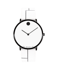Movado.Com Exclusive - The Modern 47 is a modern exploration of our iconic Museum Dial, introduced in 1947. This 40mm watch features a white dial, slim black hands, and a debossed detailed leather strap.