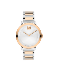 The evolution of modern design with a sharp look and elevated feel. This mix-metal timepiece is crafted from stainless steel and rose goldtone ion-plated stainless steel. It features a statement-making 34mm case that houses a captivating microtextured dial with a glossy lacquer overlay, slim hands, our iconic dot motif at 12 o’clock and rose goldtone accents.