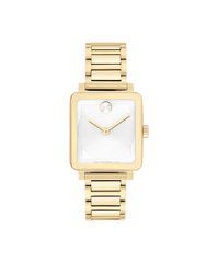 The BOLD Evolution 2.0 is defined by an elevated, bold case and a dimensional micro-textured dial. This 28mm x 26mm square watch features a white lacquer dial, slim light yellow gold tone hands, and our signature dot at 12 o'clock.