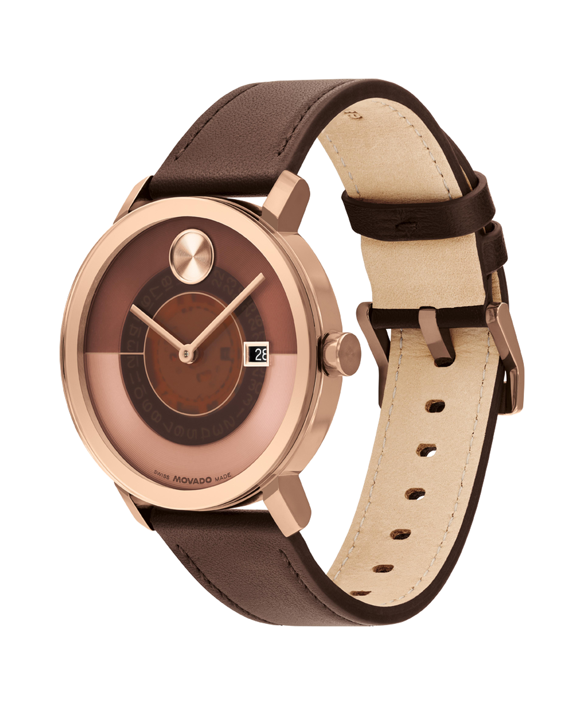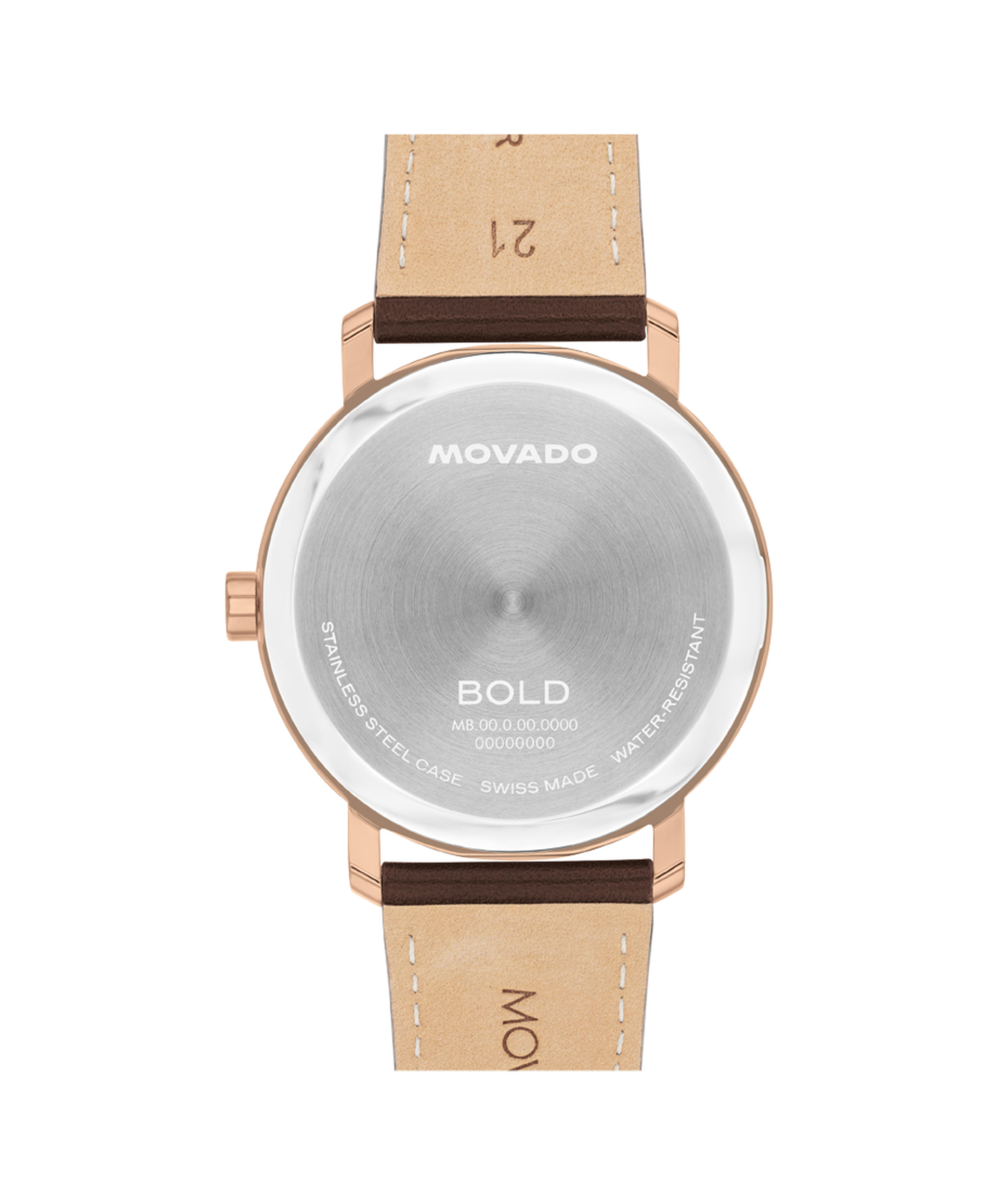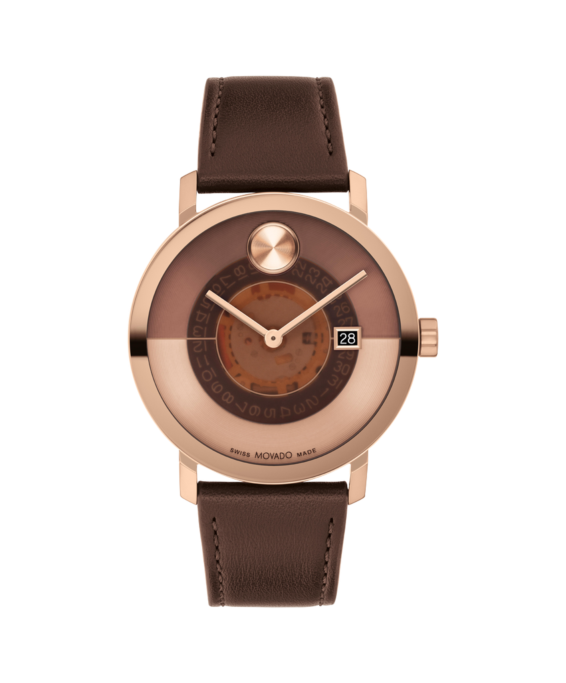 The BOLD Evolution 2.0 is defined by an elevated, bold case and a skeleton dial. This 40mm two-hand watch features a brown gradient skeleton dial, slim coffee hands, and our signature dot at 12 o'clock.