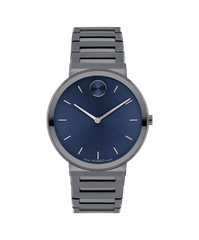 Refining sleek, contemporary style in an ultra-thin design. The 40mm case of this sophisticated watch is only 6.7mm thick, creating a super sleek silhouette. This timepiece is crafted from military grey ion-plated stainless steel and features a matching Y-link bracelet and navy dial with military grey-toned accents.
