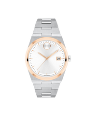 The BOLD Quest looks to the future with a shaped case and an integrated bracelet. This 35mm watch features a white dial, rose gold tone hands, and our signature dot at 12 o'clock.