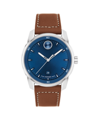 We’re reimaging the sport watch with strong, contemporary design that combines modern minimalism with a bold edge. This statement-making 42mm stainless steel case is paired with a luxe cognac leather strap. The ultra-cool blue dial features our iconic dot motif at 12:00, a date window, and Swiss Super-LumiNova® accents.