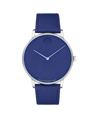 A fresh, fun take on ultra-modern, hyper-minimalist design. Add a pop of color to any look with this vibrant Face watch. Its 41mm stainless steel case houses a cool blue dial with slim light blue hands and a recessed dot at 12 o’clock. We’ve paired it with a matching blue strap crafted from luxe leather with a buckle closure.