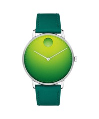 A fresh, fun take on ultra-modern, hyper-minimalist design. Add a pop of color to any look with this vibrant Face watch. Its 41mm stainless steel case houses a green ombre dial with slim steel hands and a recessed dot at 12 o’clock. We’ve paired it with a cool green strap crafted from luxe leather with a buckle closure.