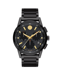 Iconic design meets sporty style. We’ve paired the modern aesthetics of our signature Museum Dial with sporty details to create the height of contemporary style. Crafted from rugged stainless steel with a rich black PVD finish, this watch boasts a 43mm case with a glossy black bezel.