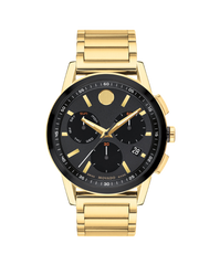 Iconic design meets sporty style. We’ve paired the modern aesthetics of our signature Museum Dial with sporty details to create the height of contemporary style. Crafted from rugged stainless steel with a gleaming yellow gold PVD finish, this watch boasts a 43mm case with a glossy black bezel.