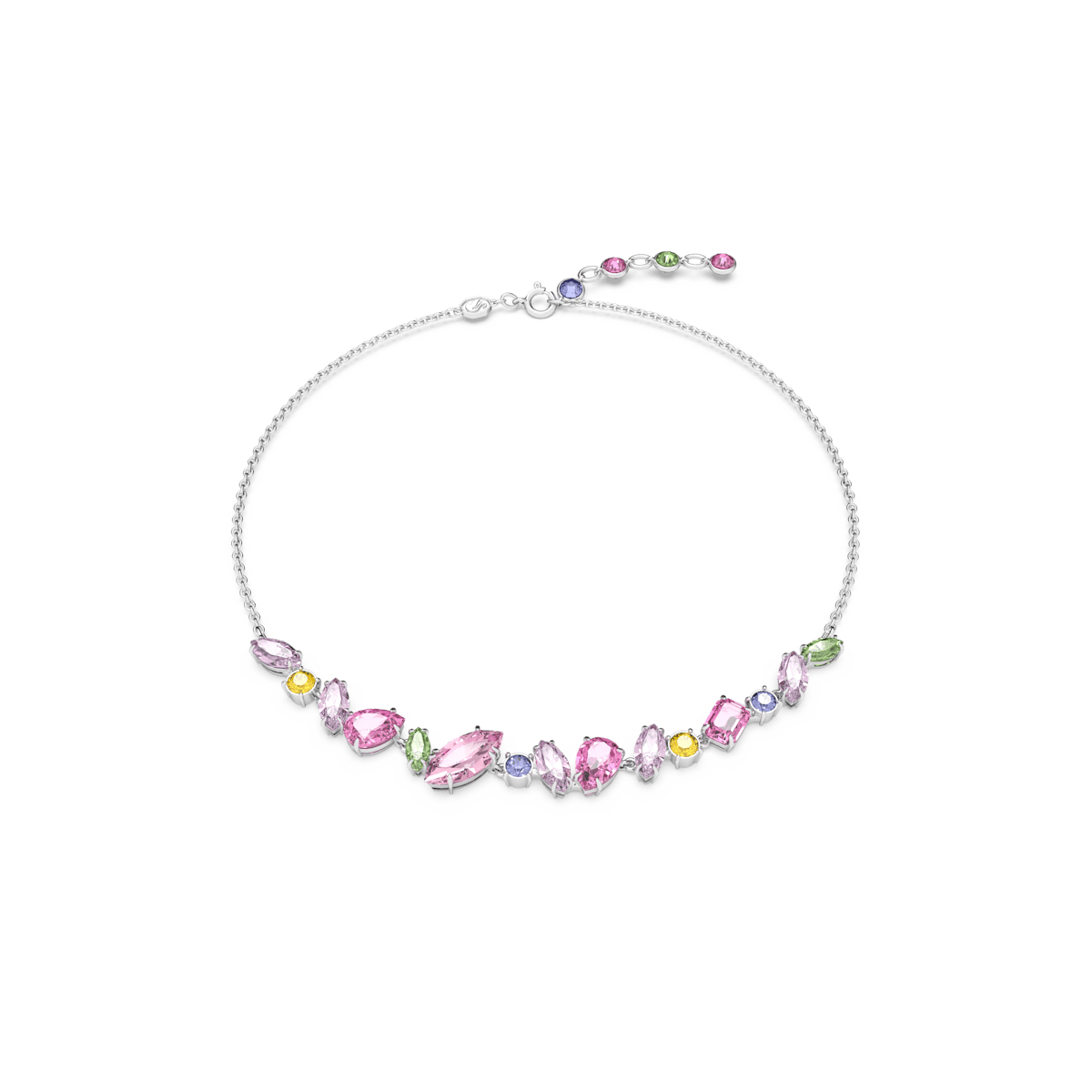 A wide variety of cuts and rich vibrant colors give this Gema necklace its own unique style. Crafted with a rhodium plated chain, the design features vivid crystals in extraordinary cuts and sizes that work beautifully together as one. Wear this necklace for a touch of prismatic joy, and combine it with other Gema pieces for a beguiling look.
