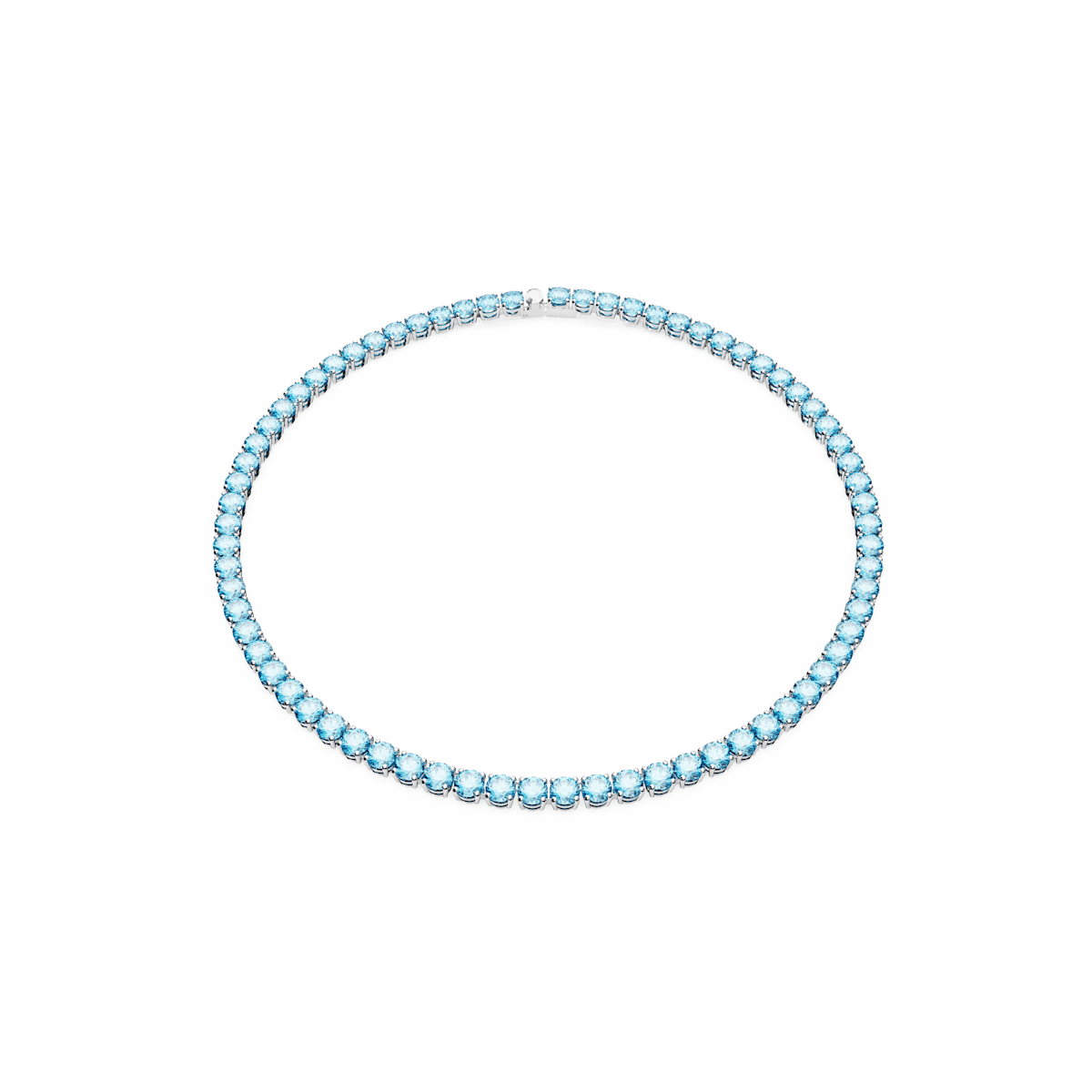 This Matrix Tennis necklace is designed for instant radiance. Each round stone features a vivid blue tone, and when combined in a perfect row on a rhodium plated chain the effect is dazzling. It’s the fluidity and vibrancy of this piece that makes it an easy choice to enhance everyday wear.