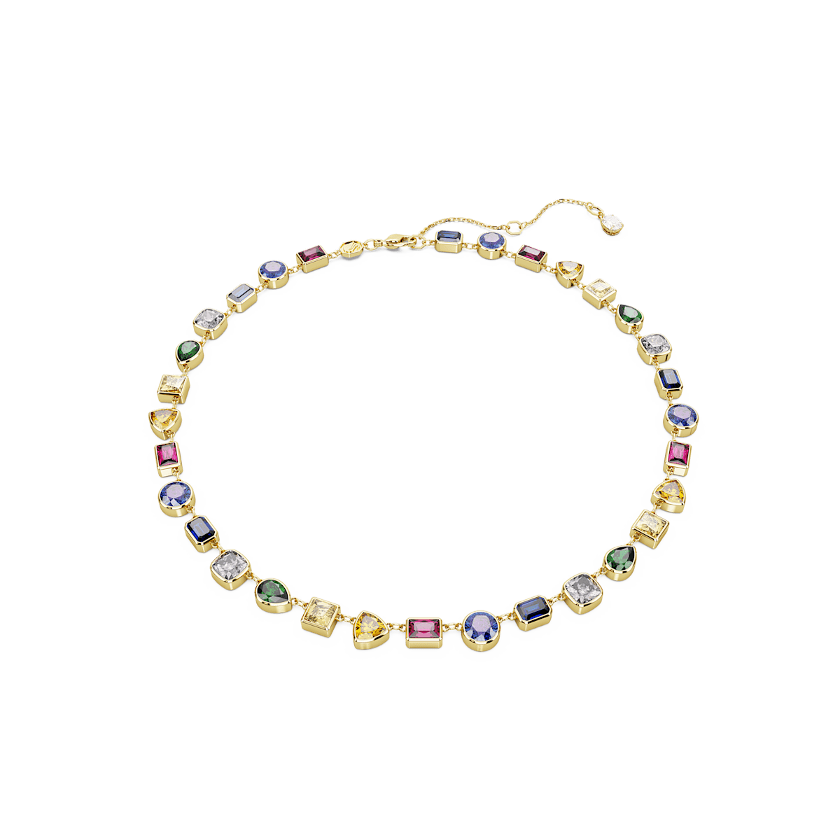 Add a pop of color and boost your mood with this uplifting necklace from the Stilla family. Crafted with a gold-tone plated setting and lobster clasp, the all-around design features an abundance of Swarovski Zirconia cuts in seven bold colors. Your go-to piece for joyful extravagance..