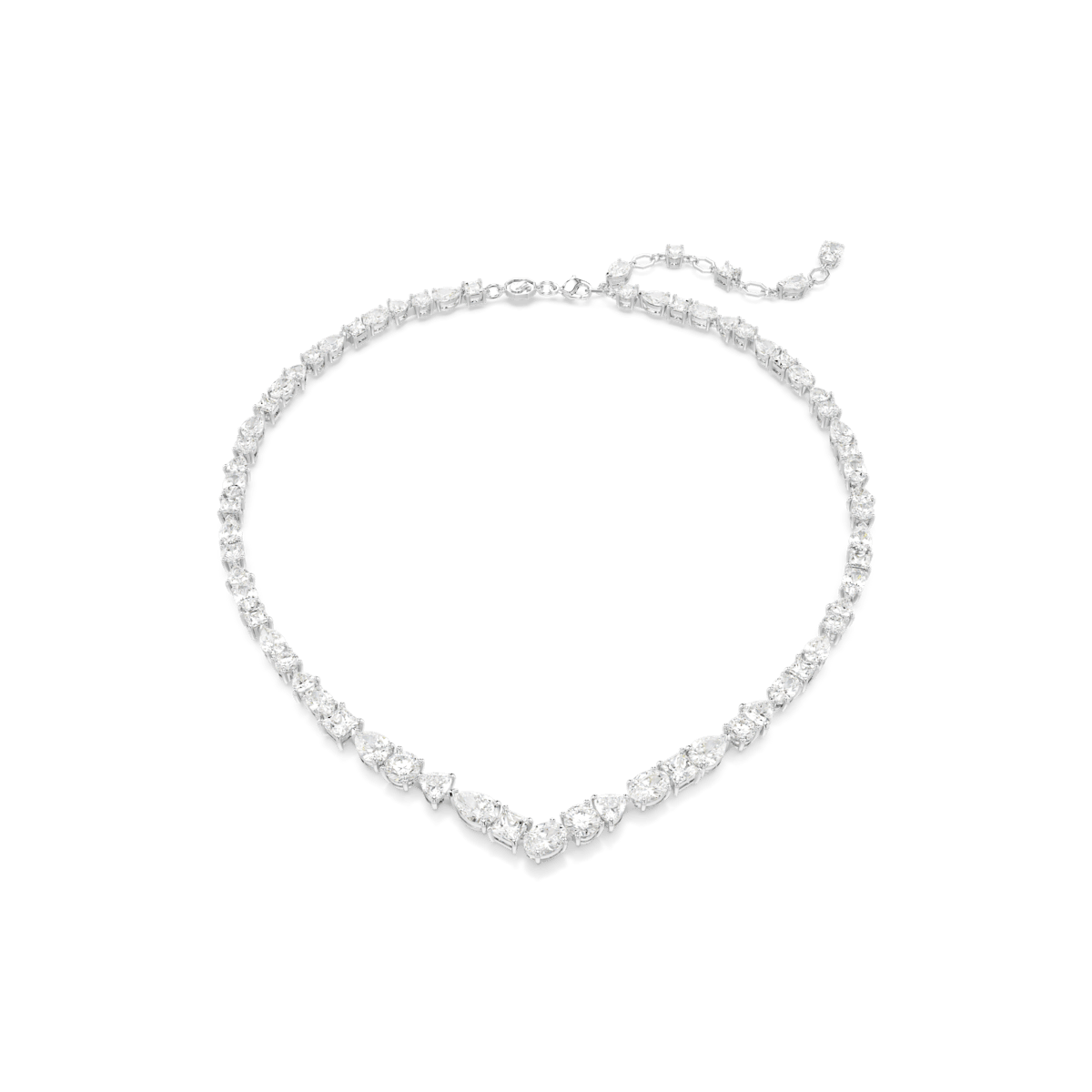 Embrace the pure refinement of this dazzling Mesmera necklace. The luminous design is made with a string of eye-catching Swarovski Zirconia on a rhodium plating setting in a surprising mix of cuts and sizes. For extra luxury, the elongation is completed with a lobster closure and a scattering of striking Swarovski Zirconia. Gift this to a loved one for a style to be worn again and again.