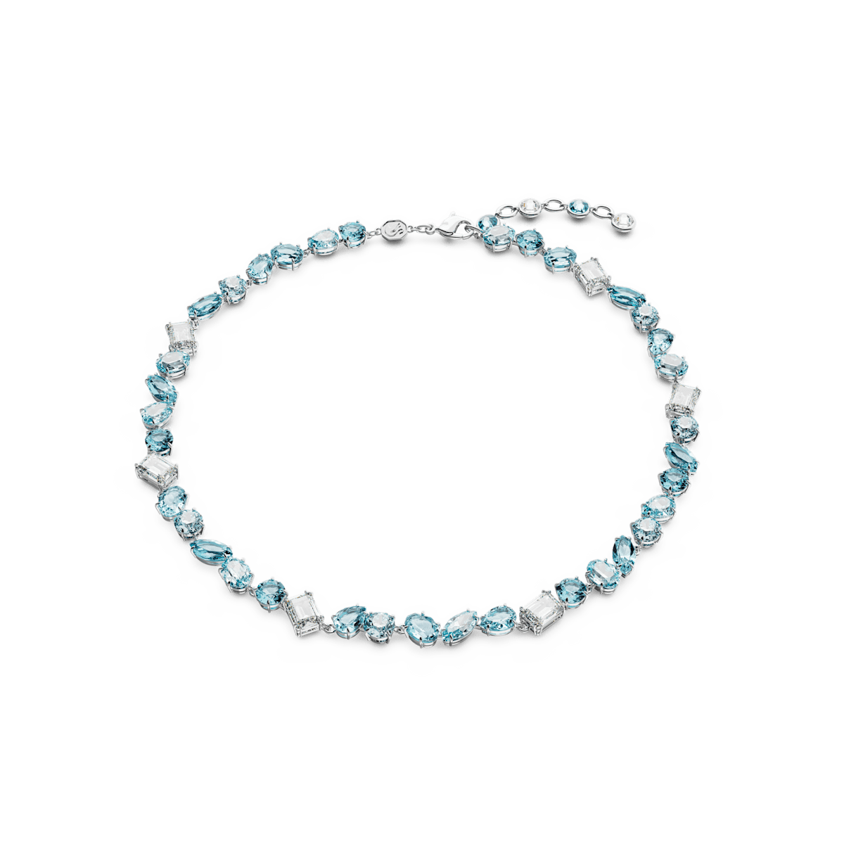 This dazzling necklace from the Gema family has been crafted to catch the eye with a shimmering mix of icy blue and clear crystals. Set in rhodium plating with refined prong settings, the all-around style with a precise yet organic combination of stones accentuates the play of light. A glamorous gift idea or glimmering choice for a celebration.