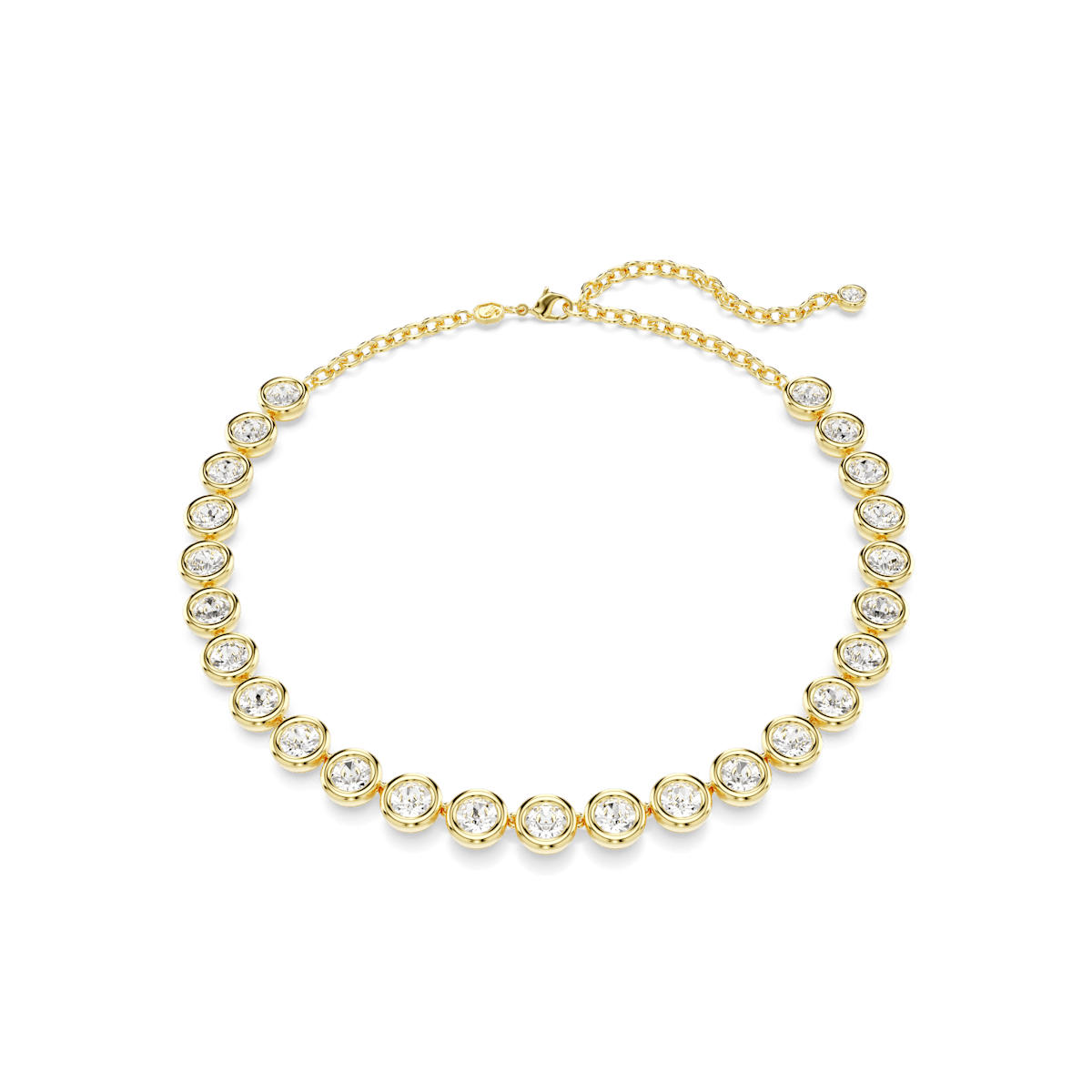 Illuminate your look with this astonishing all-around necklace from the Imber family. The gold-tone plated design features a complete strand of round-cut crystals in a puffy bezel setting, giving you a perfect way to bring radiance to your everyday style.