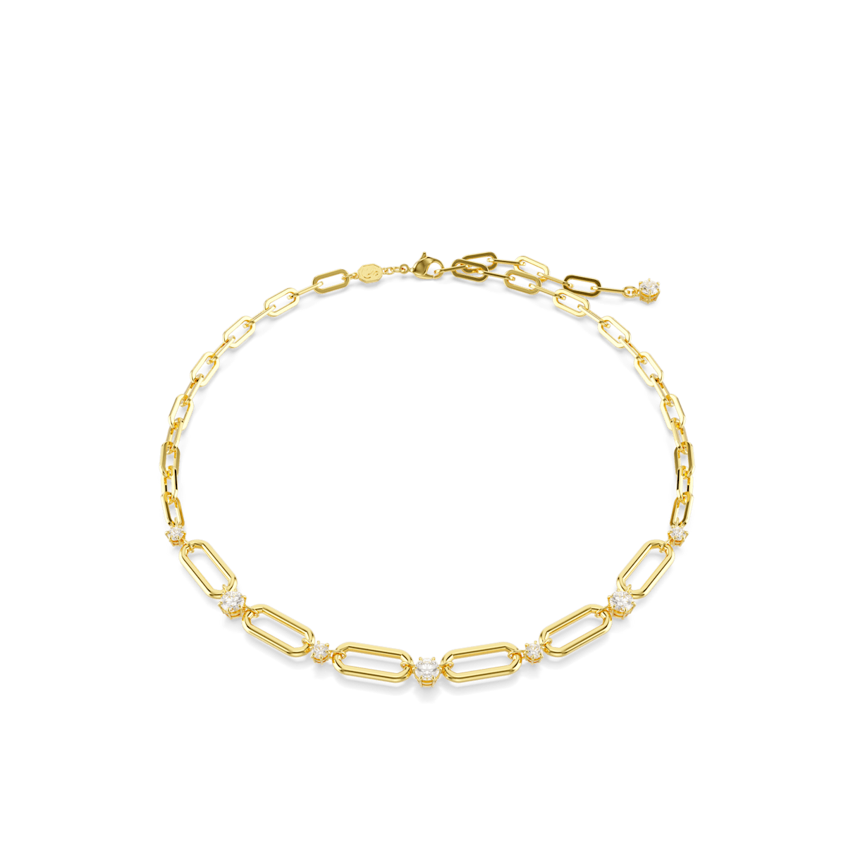 Crafted with starry inspiration, this Constella necklace will add a strong layer of confidence to any outfit. The striking design is fastened with a lobster closure and features a gold-tone plated chain with round prong-set Swarovski Zirconia placed between the central links. Wear it to embolden your look with light-catching radiance and joy.