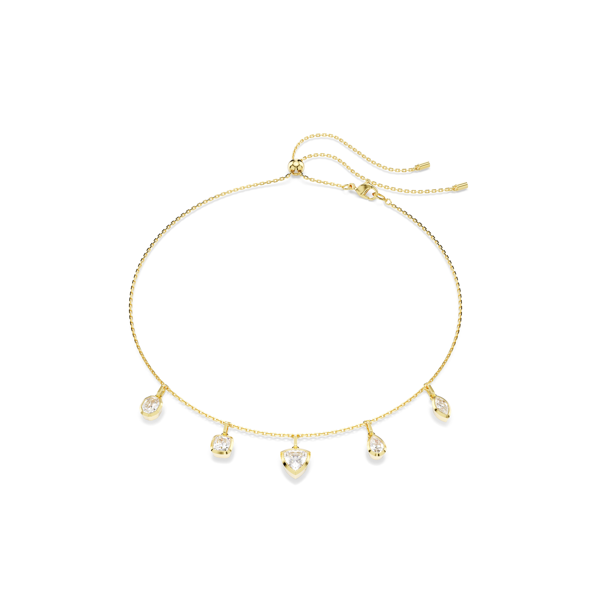 Decorate yourself with radiant droplets of light with this stunning gold-tone plated necklace. The Imber design features a variety of dangling Swarovski Zirconia, each presented in different shapes and placed in a modern bezel setting. An innovative pulling mechanism at the back lets you adjust the length of the jewelry to find your perfect look. Wear this necklace at any time of day to exude an air of refinement.