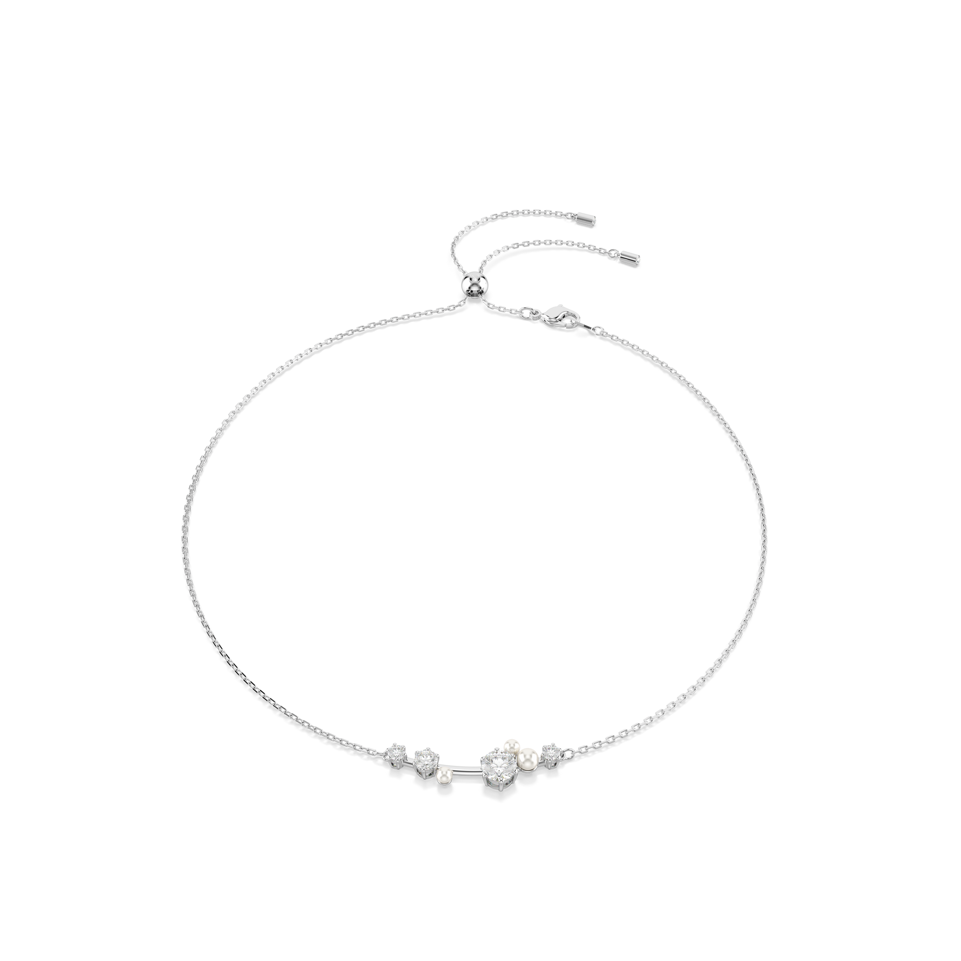 Swarovski Constella necklace, Crystal pearl, Round cuts, White, Rhodium plated
