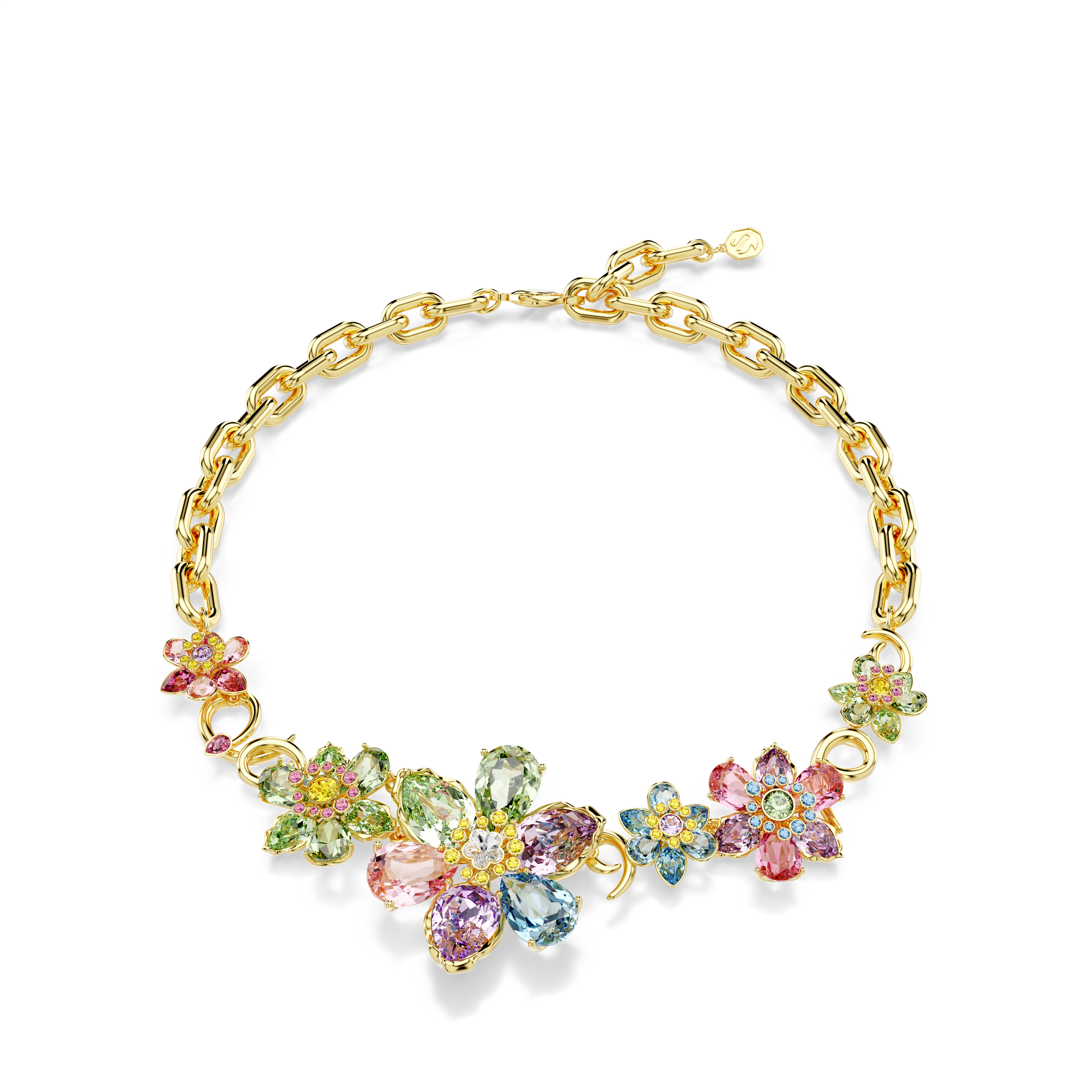 Swarovski Idyllia necklace, Mixed cuts, Flower, Multicolored, Gold-tone plated
