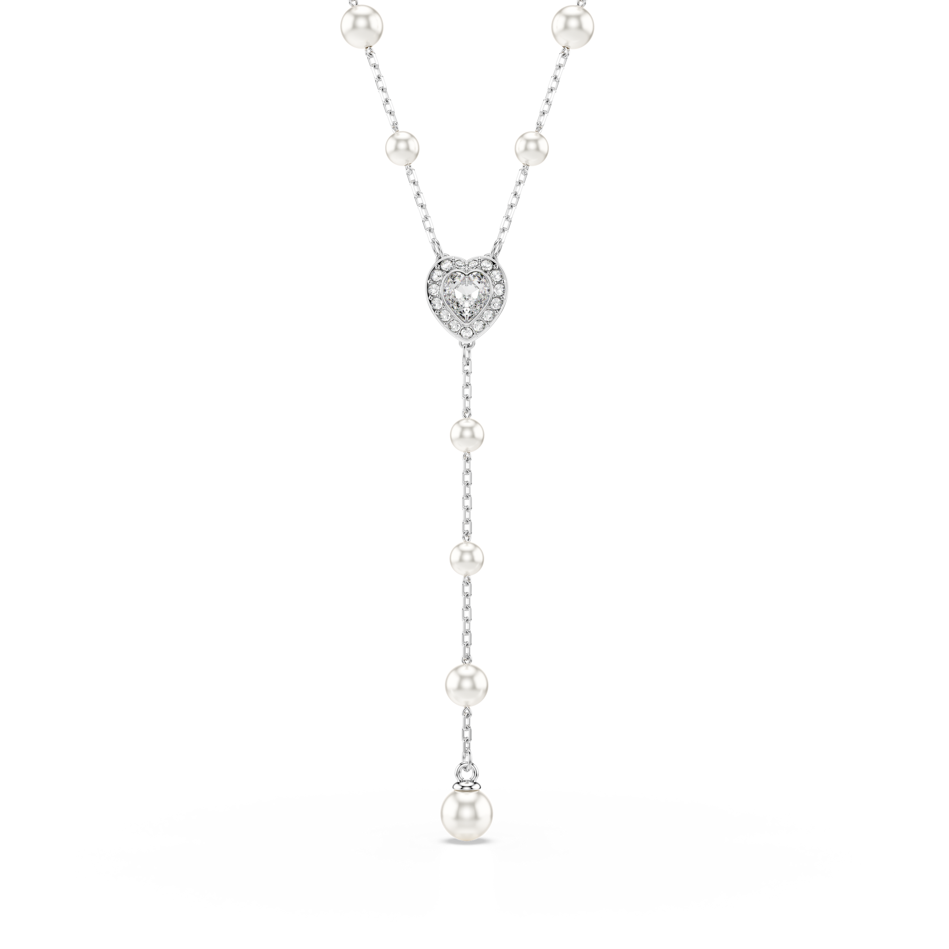 Swarovski Ariana Grande x Swarovski Y necklace, Crystal pearl, Mixed cuts, Heart, White, Rhodium plated