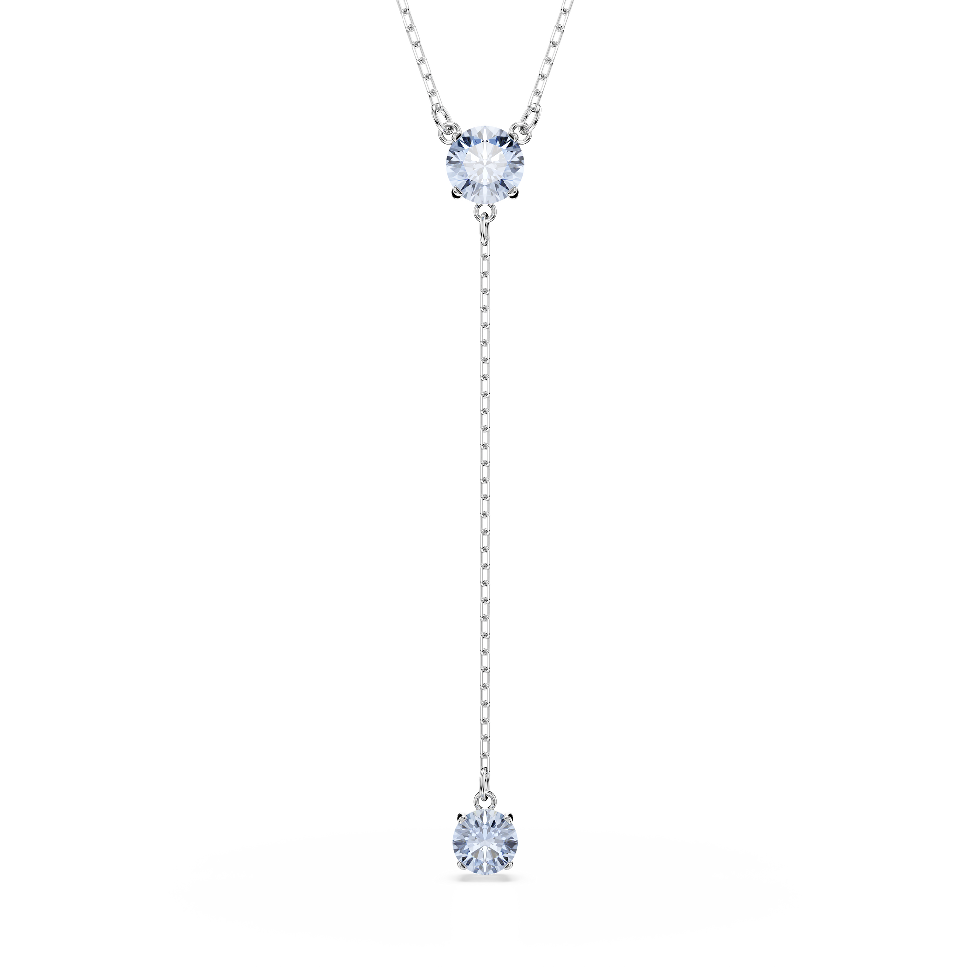Shaped with elegance and infused with color, this necklace is a pure expression of Swarovski’s joyful style. The rhodium plated design features a central round-cut crystal in blue, with another that is suspended below from a delicate chain. Wear this light-catching piece to illuminate your look for any special occasion.
