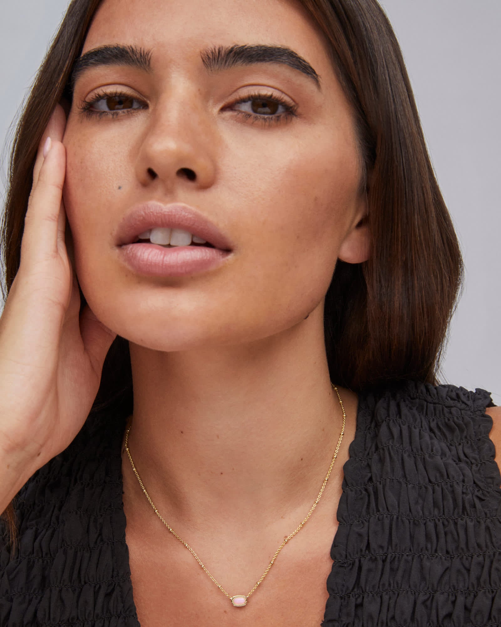 Our bestselling icon goes daintier (and cuter!) than ever in the Mini Elisa Gold Satellite Short Pendant Necklace in Pink Opalite Crystal. Set on a textured satellite chain, this take on our signature shape is perfect for those with a more minimal aesthetic or anyone wanting to add some color to their layers.