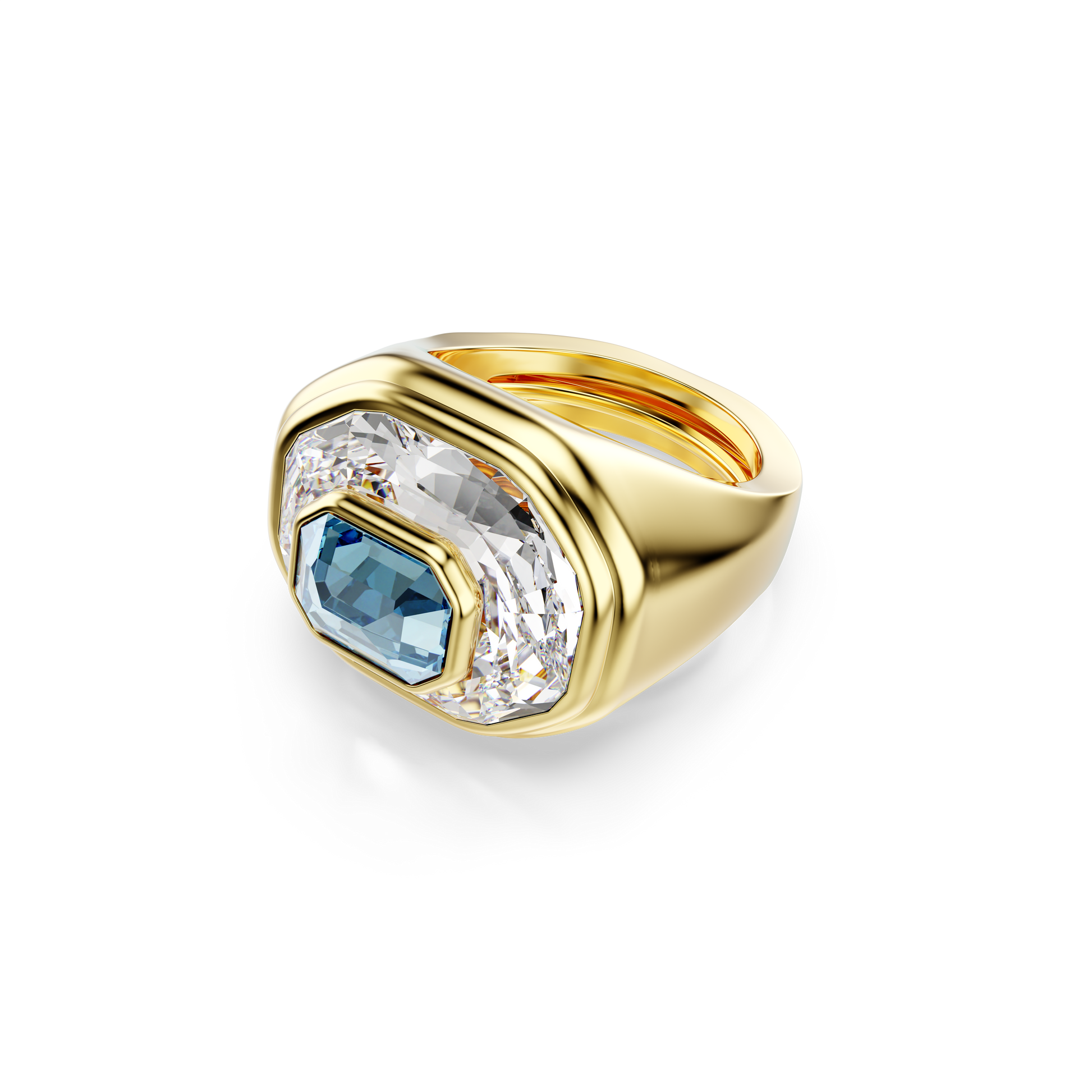 Swarovski Chroma cocktail ring, Octagon cut, Blue, Gold-tone plated