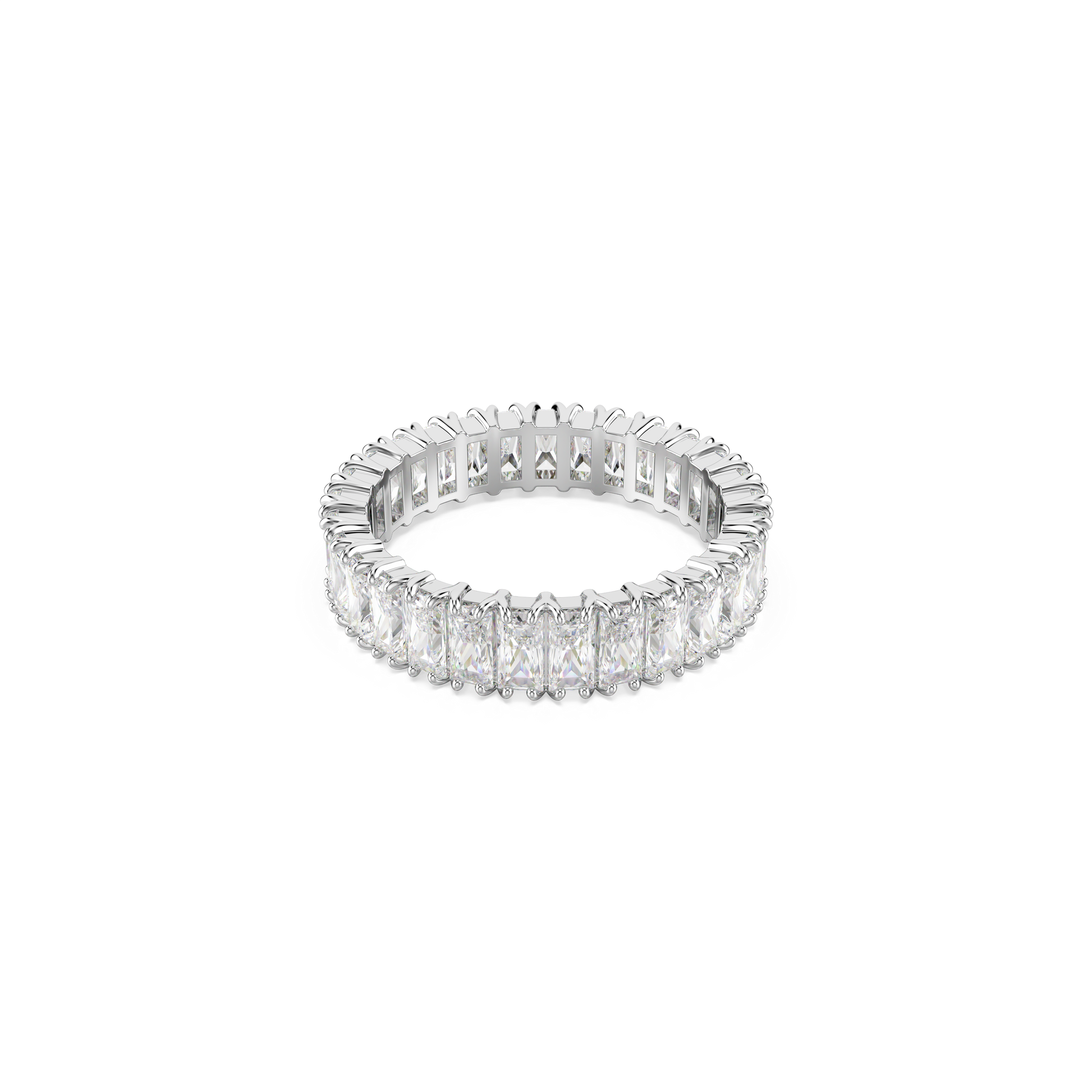 No jewelry collection is complete without a radiant band ring. This silver-tone finish design features a full surround of baguette-cut Swarovski Zirconia, each placed within a refined prong setting. A sensational piece to wear solo or stacked with similarly dazzling rings from the Matrix family.