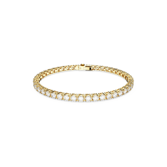 Matrix Tennis bracelet, Round cut, White, Gold-tone plated