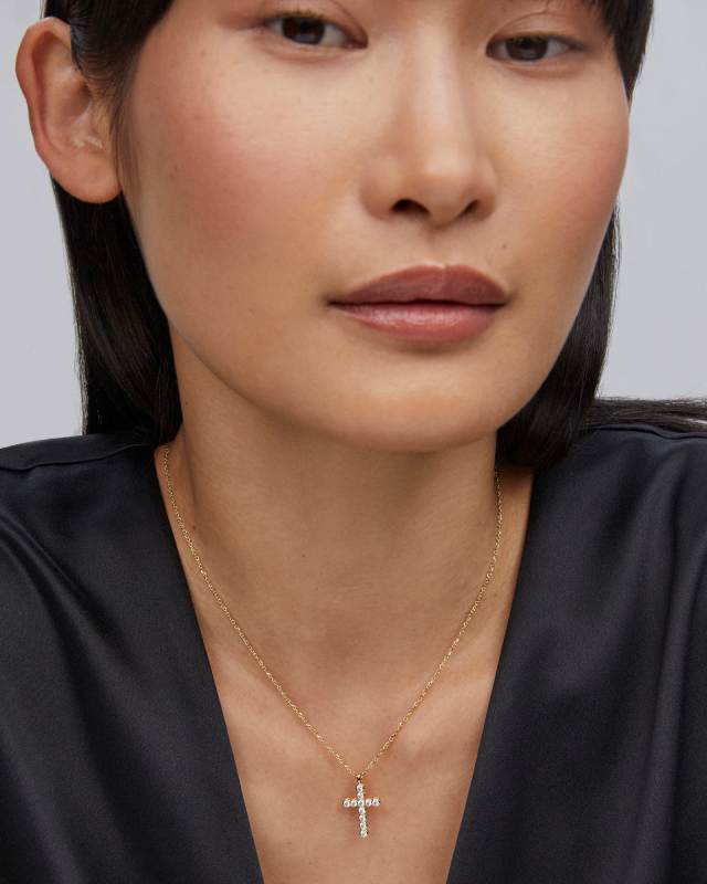 A delicate symbol with subtle shine, the Cross Gold Pendant Necklace in White CZ is a meaningful reminder of what matters to you most.