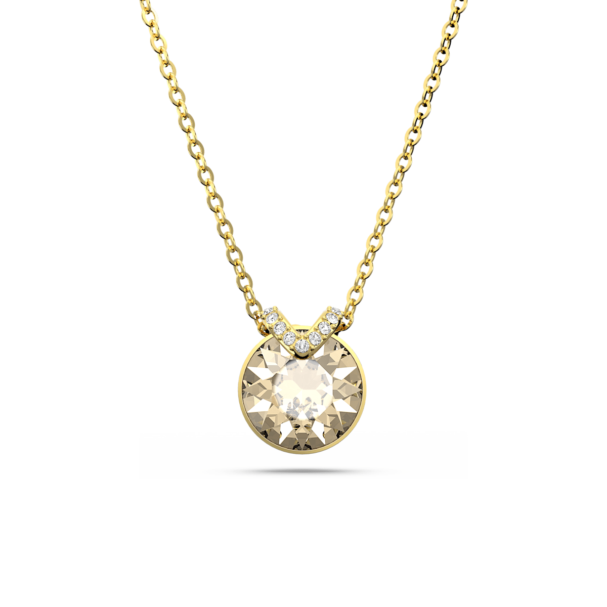Made with simplicity in mind, this alluring necklace features a captivating golden center stone set in gold-tone plating, while the use of delicate clear pavé adds an extra layer of beauty. Easy to style, this pendant will take you from day to night with minimal effort.