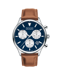 First introduced in 1950, the Movado Calendoplan captures the soul of mid-century design with contemporary details. This timeless chronograph timepiece is inspired by our archives and features a 43mm stainless steel case framing a blue dial outfitted with three grey-toned subdials, Swiss Super-LumiNova® accents and a date window.