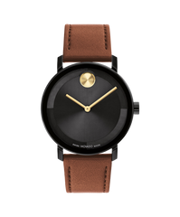 The evolution of modern design with a sharp look and elevated feel. Crafted from black ion-plated stainless steel, this sleek timepiece features a statement-making 40mm case that houses a captivating micro-textured tonal dial with a glossy lacquer overlay, slim hands, and our iconic dot motif at 12 o’clock in gleaming pale yellow goldtone ion-plated stainless steel.