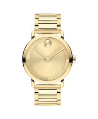 The evolution of modern design with a sharp look and elevated feel. Crafted from pale yellow goldtone ion-plated stainless steel, this sleek timepiece features a statement-making 40mm case that houses a captivating micro-textured goldtone dial with a glossy lacquer overlay, slim hands, and our iconic dot motif at 12 o’clock.