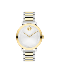 The evolution of modern design with a sharp look and elevated feel. This mix-metal timepiece is crafted from stainless steel and pale yellow goldtone ion-plated stainless steel. It features a statement-making 34mm case that houses a captivating micro-textured silvertone dial with a glossy lacquer overlay, slim goldtone hands, and our iconic dot motif at 12 o’clock.