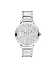 The evolution of modern design with a sharp look and elevated feel. Crafted from stainless steel, this sleek timepiece features a statement-making 34mm case that houses a sparkling crystal pave dial, slim hands, and our iconic dot motif at 12 o’clock.