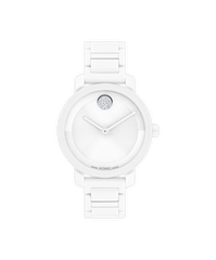 The evolution of modern design with a sharp look and elevated feel. Crafted from sleek white ceramic, this timepiece features a statement-making 34mm case that houses a captivating micro-textured dial, slim hands, and our iconic dot motif at 12 o’clock in sparkling crystals.