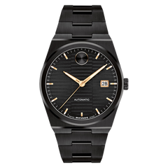 The BOLD Quest Automatic looks to the future with a shaped case and an integrated bracelet. A Swiss made self-winding movement drives this watch, powered by the motion of your wrist. This 39mm watch features a black dial, rose gold tone hands, and an exhibition case back.