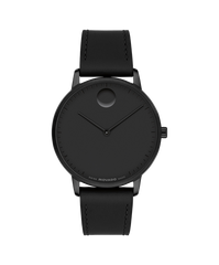 The Face Collection explores modern minimalism through the art of color. This 39mm two-hand watch features a black dial, slim black hands, and our oversized recessed dot at 12 o'clock. Also available in a 41mm case size.