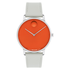 The Face Collection explores modern minimalism through the art of color. This 39mm two-hand watch features an orange dial, slim steel hands, and our oversized recessed dot at 12 o'clock.
