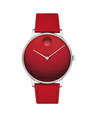 A fresh, fun take on ultra-modern, hyper-minimalist design. Add a pop of color to any look with this vibrant Face watch. Its 41mm stainless steel case houses a red ombre dial with slim steel hands and a recessed dot at 12 o’clock. We’ve paired it with a bright red strap crafted from luxe leather with a buckle closure.