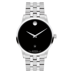 The Museum Classic is the purest interpretation of Movado's Museum Dial—an icon of modern design seen in art institutions around the world. A Swiss made self-winding movement drives this watch, powered by the motion of your wrist. This 40mm two-hand watch features a black lacquer dial, steel dauphine hands, and our signature dot at 12 o'clock